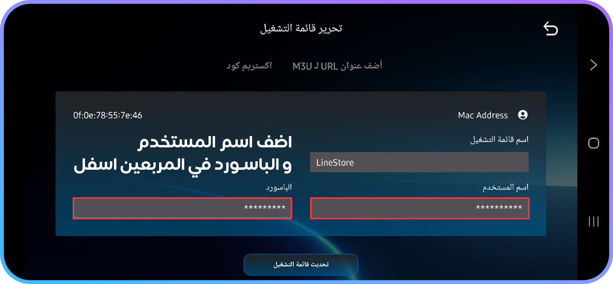 قم بنسخ اليوزر والباسوورد كما في الصورة بالأسفل لإستخدامها
