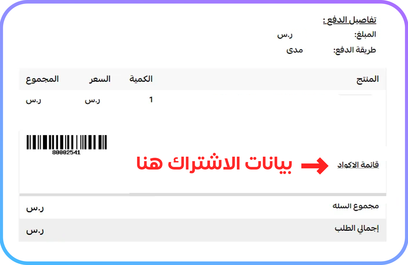 بعد طلب الإشتراك من المتجر، ستظهر لك بيانات التفعيل مباشرة بعد الدفع وايضاً ستصلك عبر الإيميل